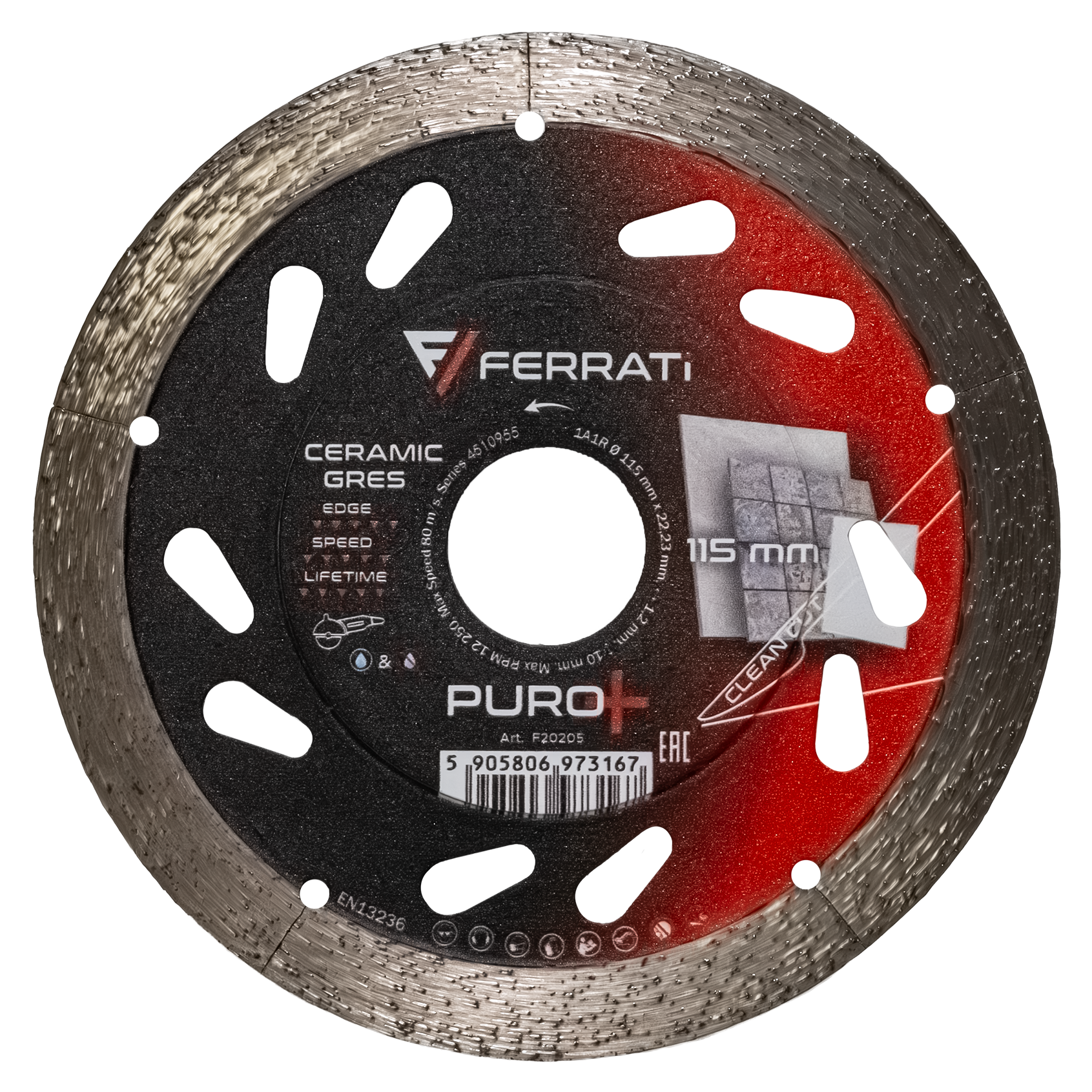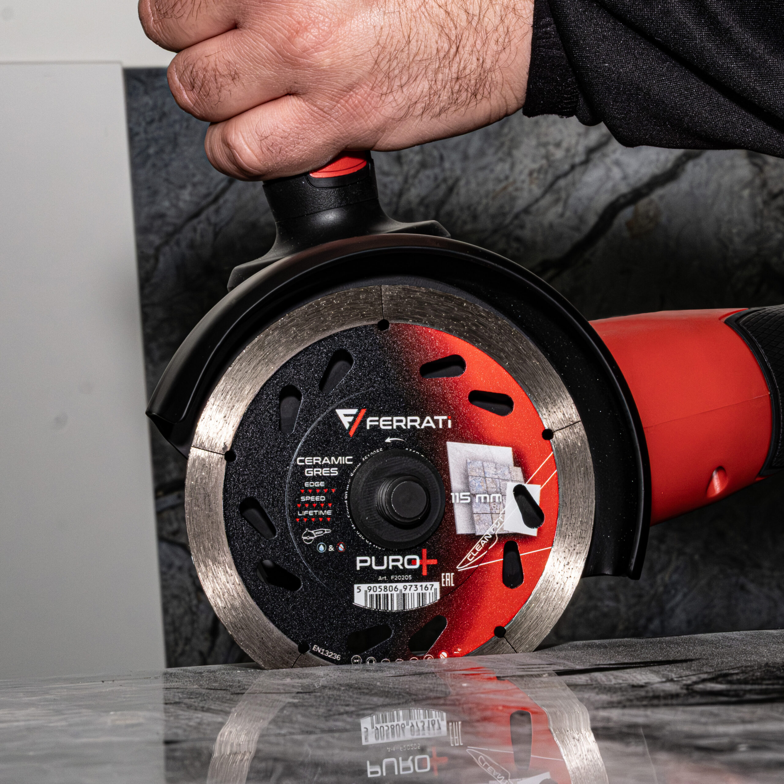 Wzmocniony korpus oraz nowe, przeprojektowane otwory wentylacyjne poprawiają stabilność tarczy, ograniczają przegrzewanie się segmentu i zapewniają efektywniejszą pracę. Dzięki temu PURO+ zachowuje stałą precyzję nawet przy długich i wymagających cięciach – od małych płytek po wielkoformatowy gres.